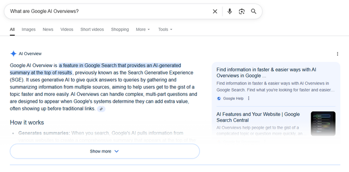 Your users aren’t looking for keyword-stuffed copy. And this approach won’t help you appear in AI-generated summaries. Instead, write in plain, conversational language that answers questions directly.